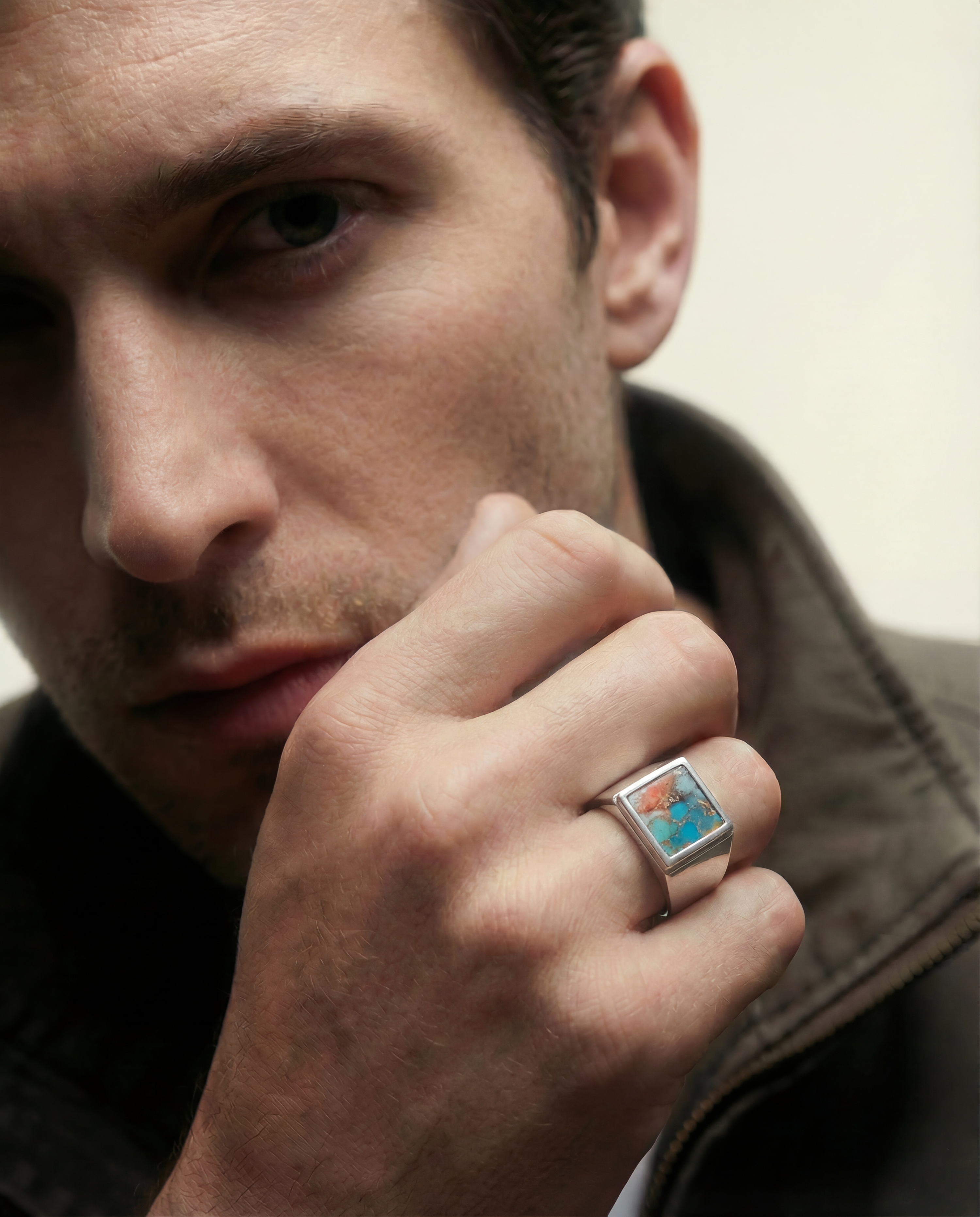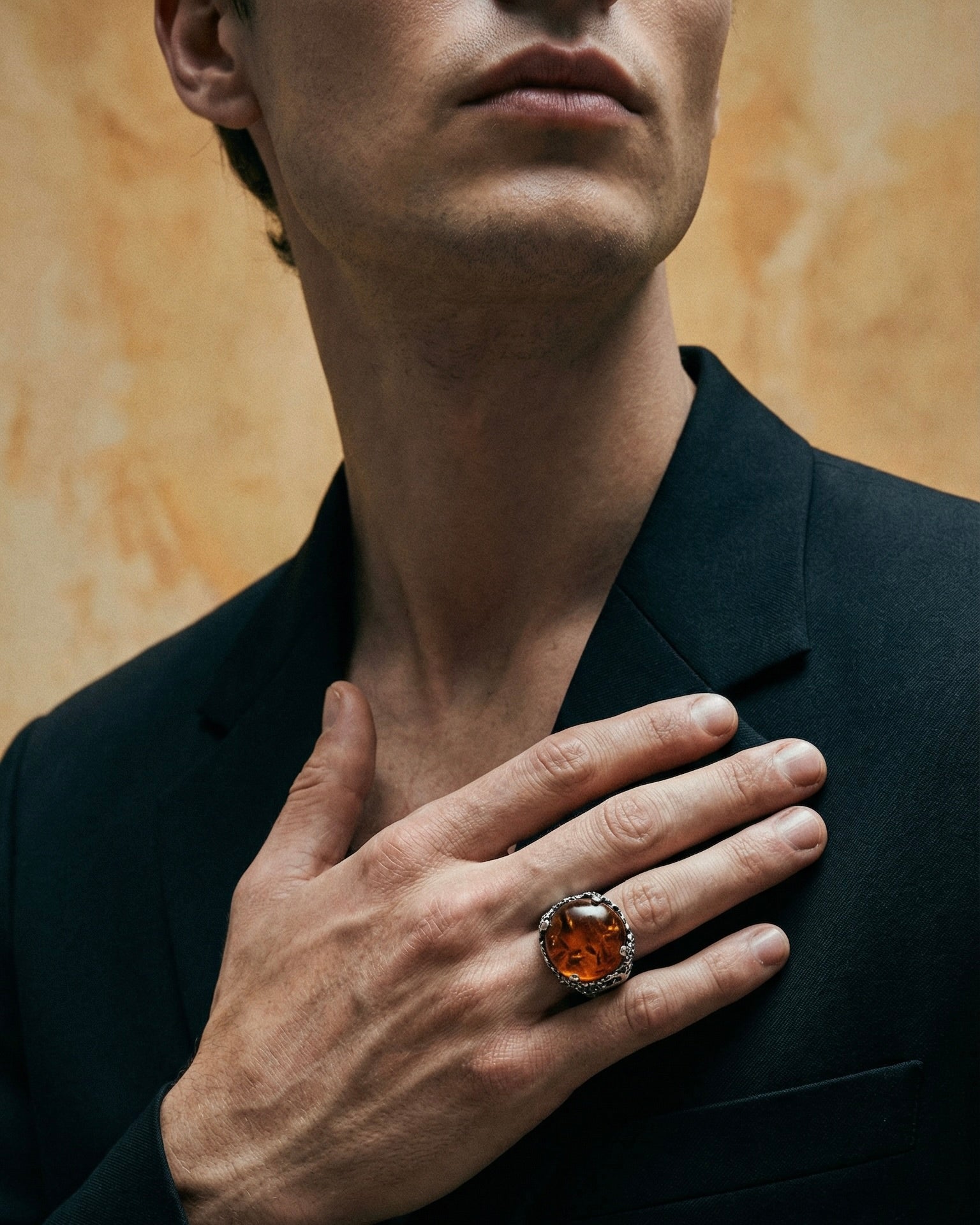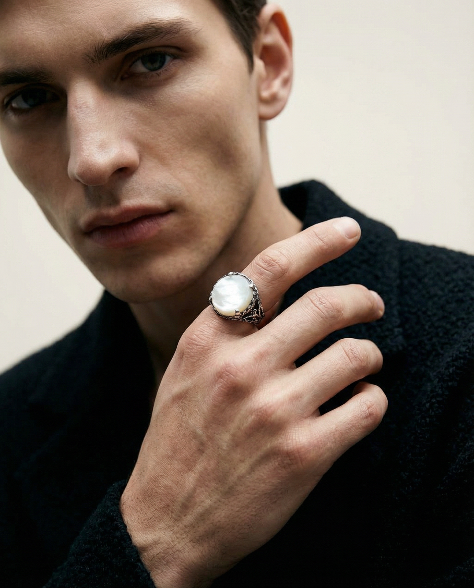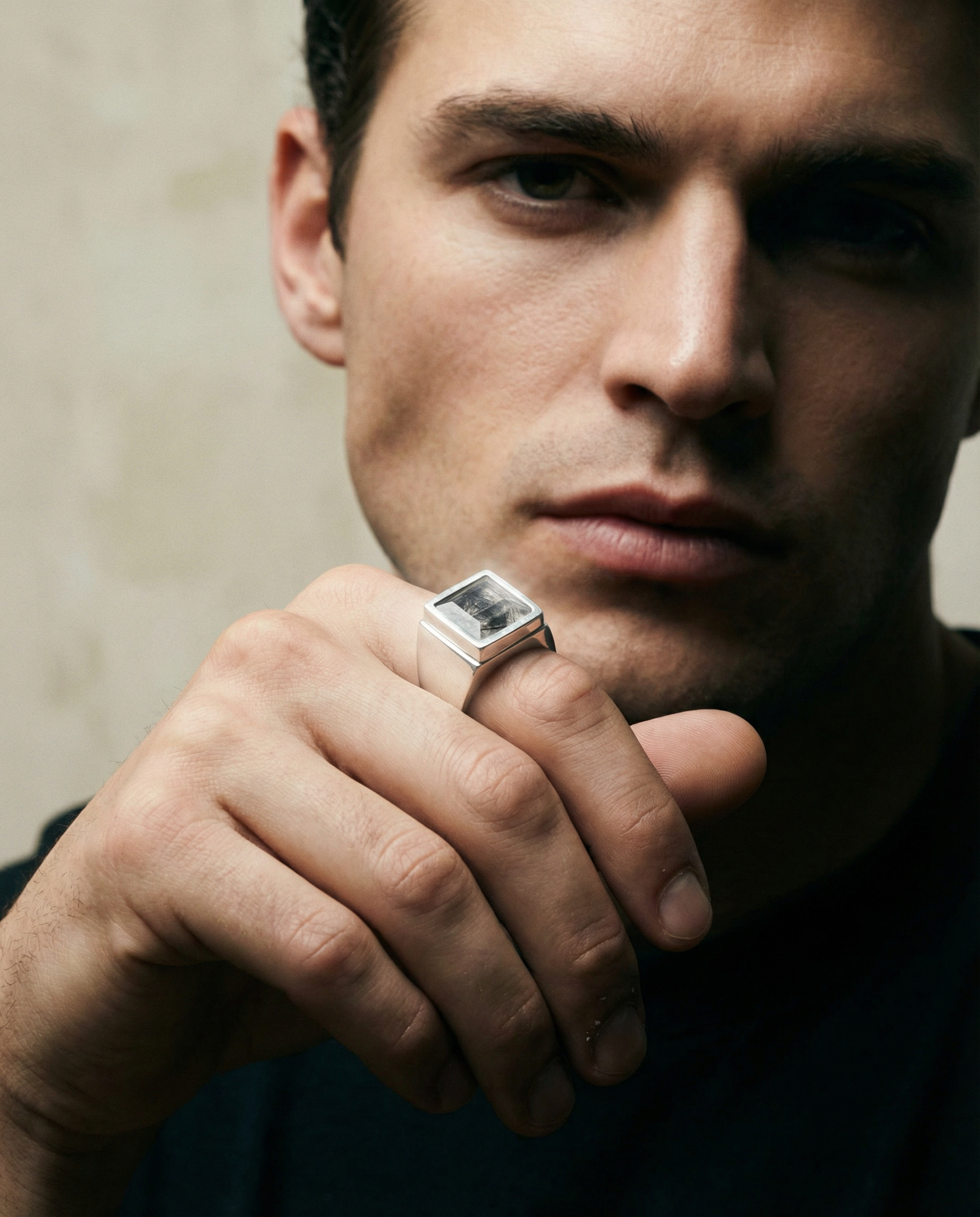 "In the Earth Elements collection, we pair our signature hand-carved silver with the raw energy of natural minerals. From the 'frozen lightning' found inside Black Rutile Quartz to the deep, volcanic void of Onyx, these stones are chosen for their inclusions and character. No two gems are identical, ensuring that every piece—like the THUNDER or BASALT signets—is a unique fragment of the earth’s history, balanced with the cold strength of solid sterling silver."