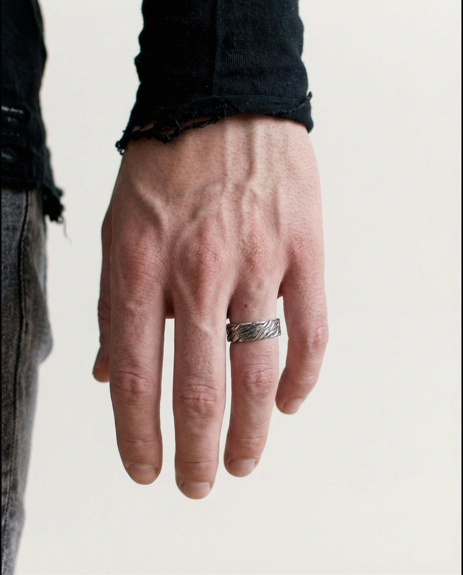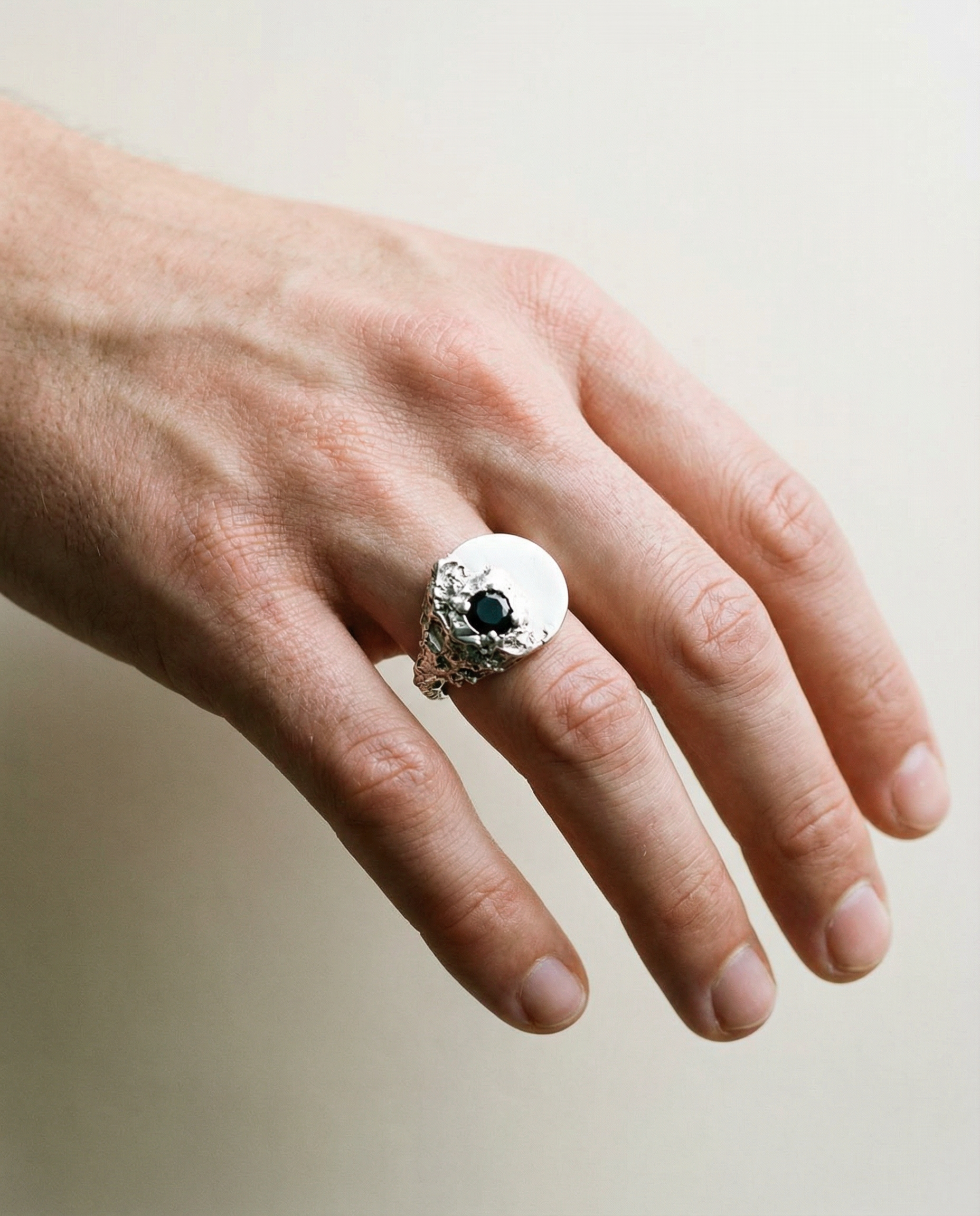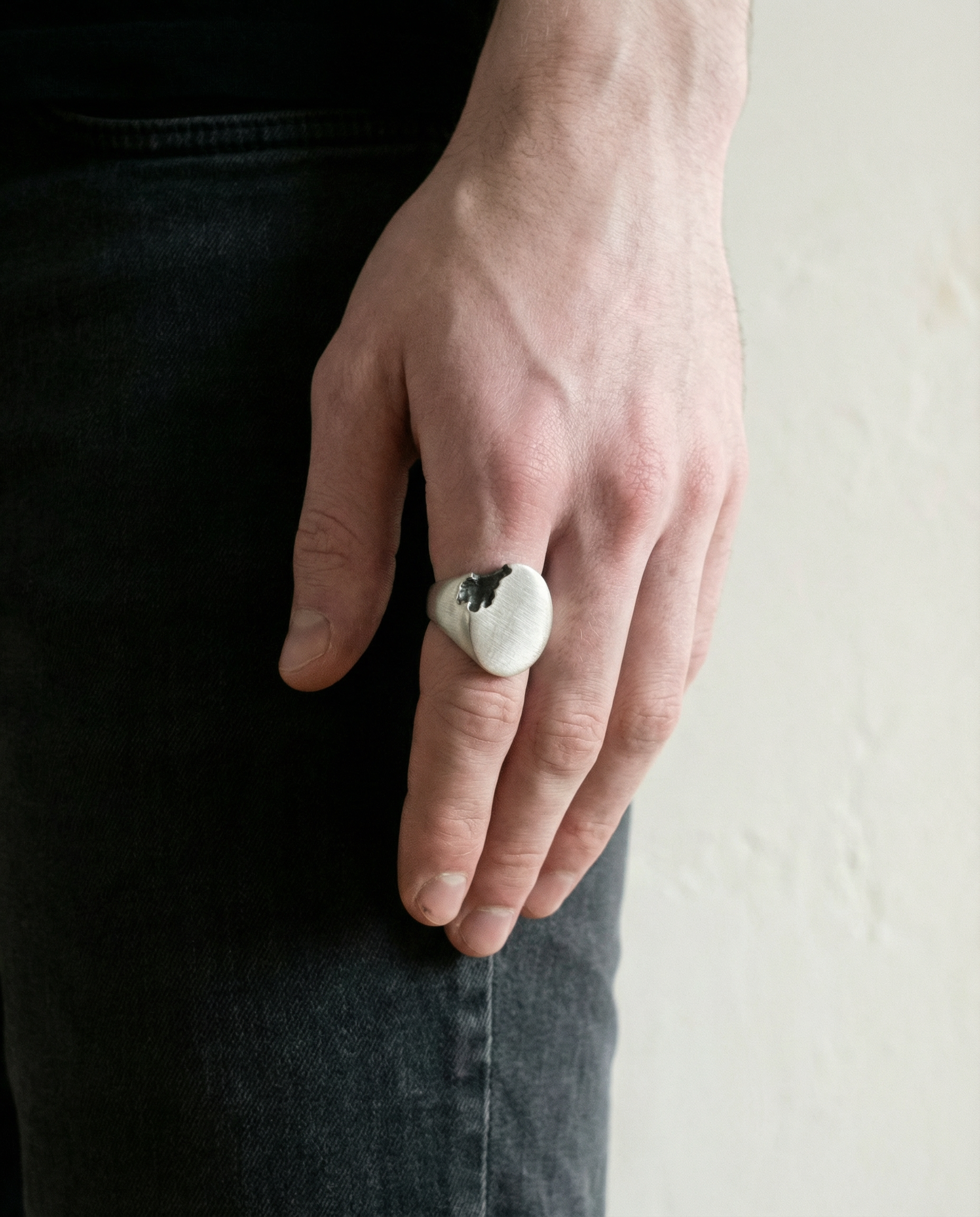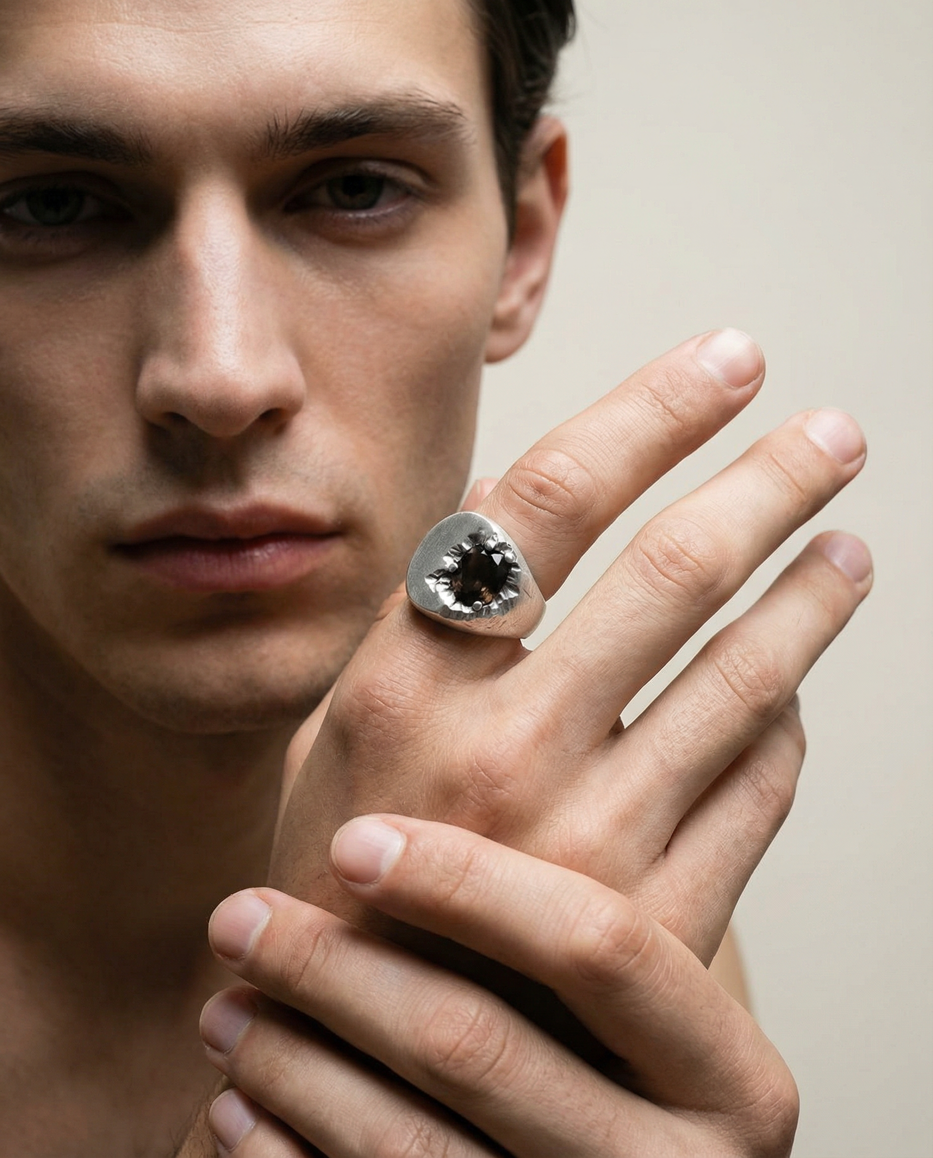 "This collection is an homage to the invisible forces that shape our world. Here, silver is not merely polished; it is weathered, carved, and eroded to reveal the brutal beauty of imperfection. Every piece in the Raw & Eroded series is a geological exploration. Inspired by rugged cliffs, dry riverbeds, and tectonic pressure, these jewels capture the moment raw matter becomes a relic. Hand-sculpted in Denmark, each ring and cuff features a unique topography of craters, fissures, and ridges."