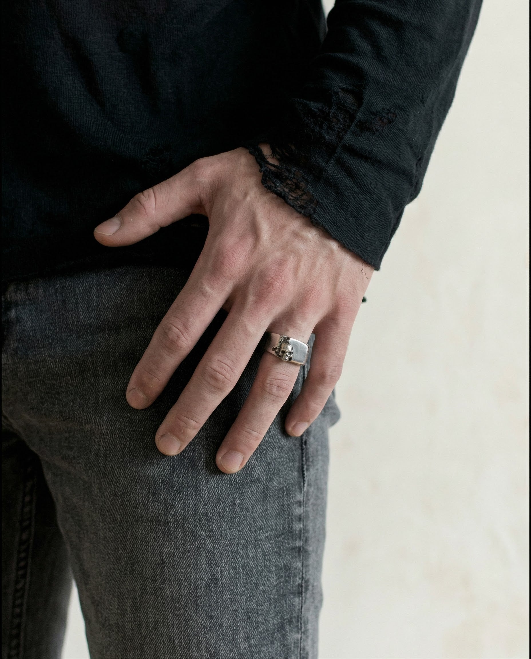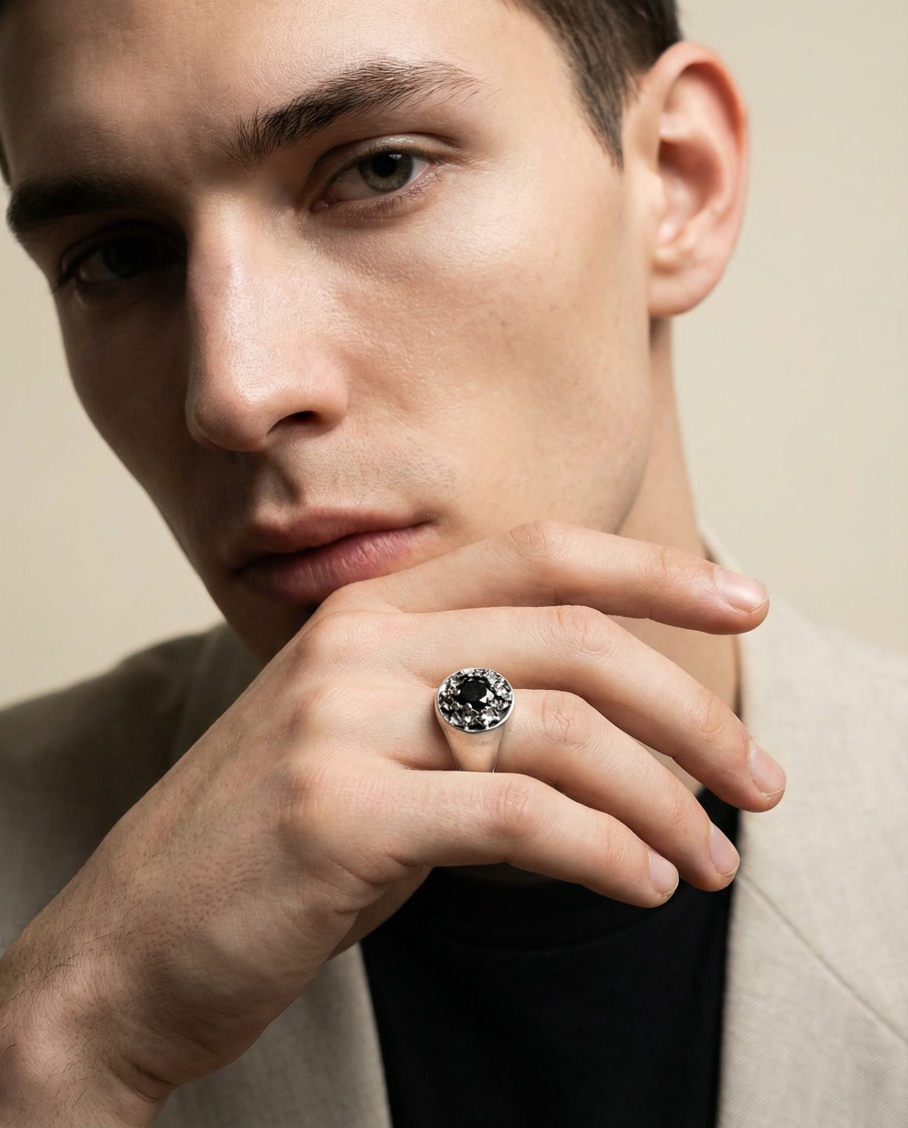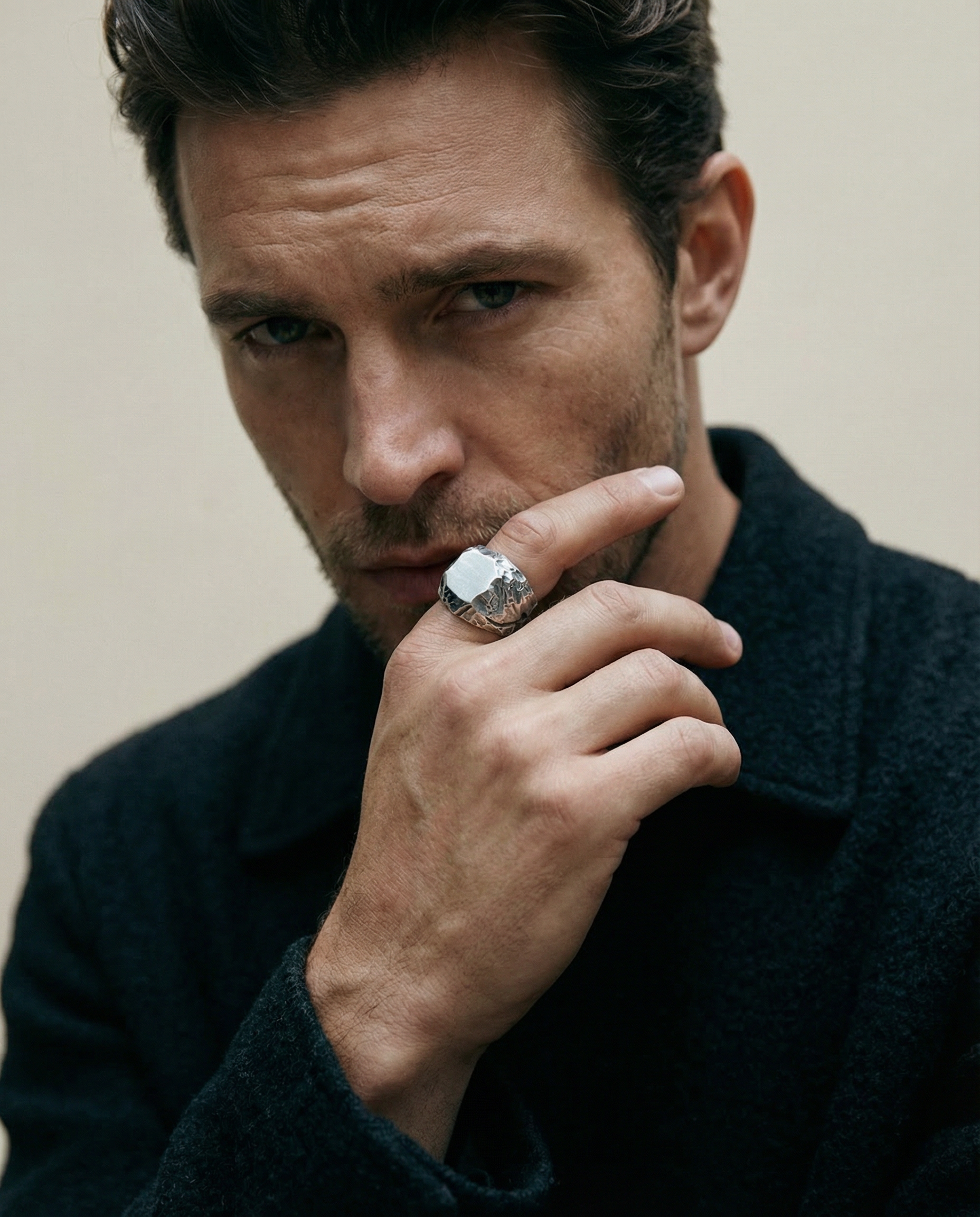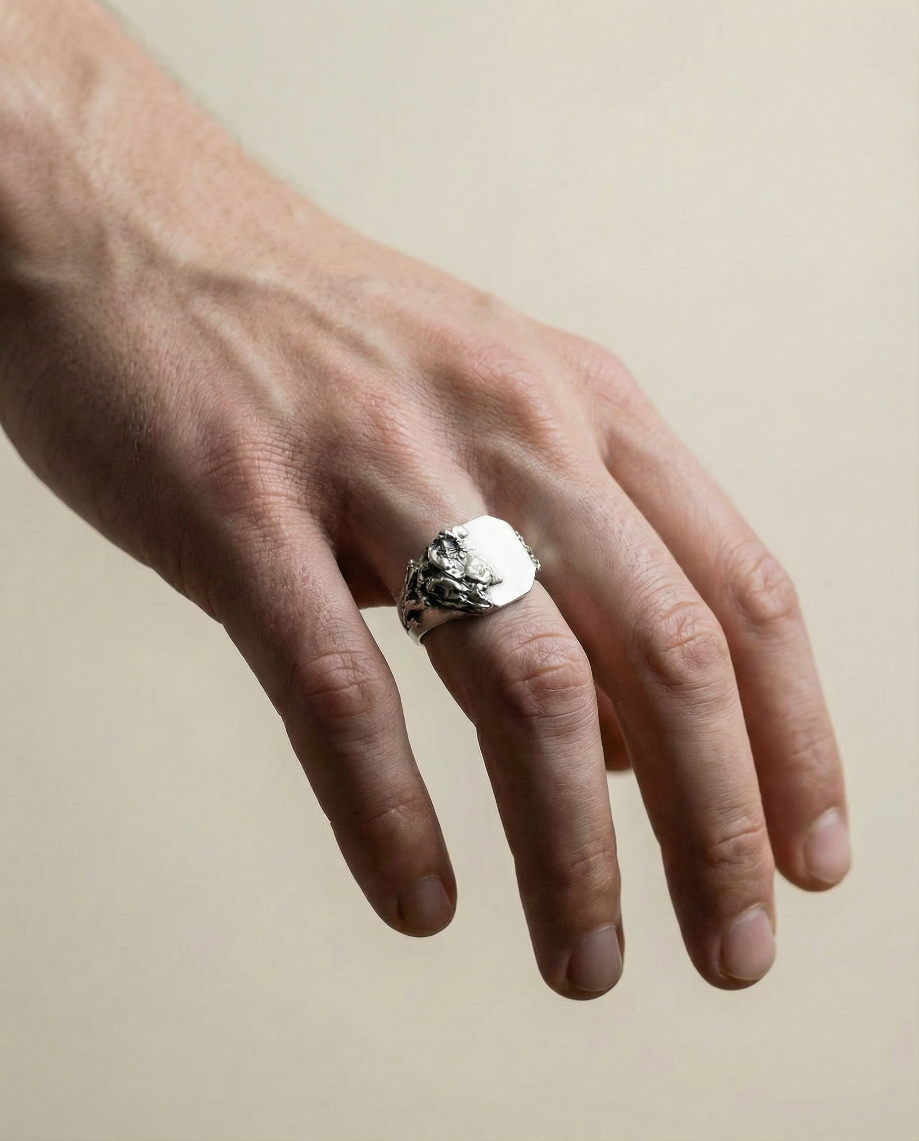 "This collection is an homage to the invisible forces that shape our world. Here, silver is not merely polished; it is weathered, carved, and eroded to reveal the brutal beauty of imperfection. Every piece in the Raw & Eroded series is a geological exploration. Inspired by rugged cliffs, dry riverbeds, and tectonic pressure, these jewels capture the moment raw matter becomes a relic. Hand-sculpted in Denmark, each ring and cuff features a unique topography of craters, fissures, and ridges."